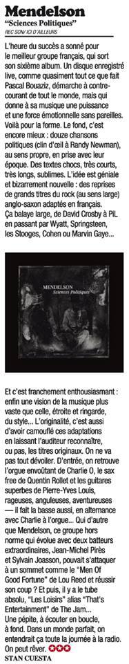 SCIENCES POLITIQUES / MENDELSON Dans ROCK & FOLK